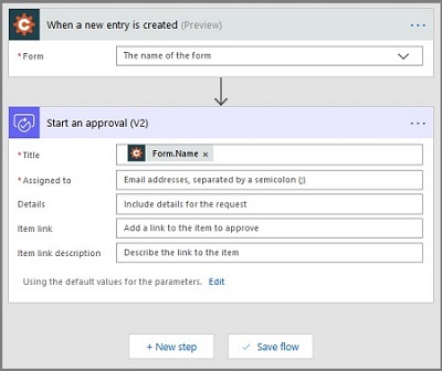 Search "Cognito Forms" in the search bar and choose “Start an approval when a new Cognito Forms Entry is Submitted” template.