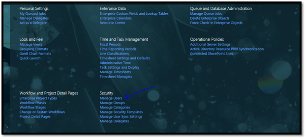 After selecting the sites, click on Project Web app settings on the top ribbon, as shown below.