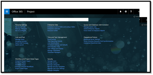 Enter your credentials to log in to Office365 Project site. After successfully logging in, you will be able to see the screen given below as a landing page.