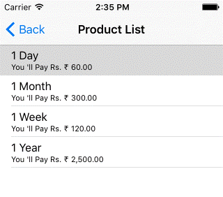 As per your requirement you can access any of them. But here, I’m storing all the information of the product. So, instead of storing in a local variable we’ll create a Modal Class which has the same property as SKProduct has.