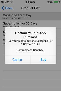 Now, you are ready to test your code with the sandbox account what you have created in the beginning of this blog. Before doing this, make sure you have added your Sandbox account in your Device’s iTunes.