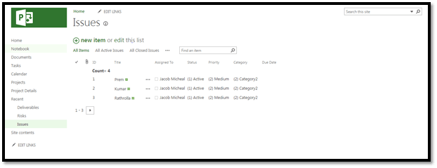 Let’s perform our pagination activity on "Issues" SharePoint list which you can see in the left side quick launch.