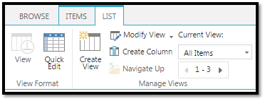 Our aim is to increase the pagination for this list from 3 to more. To do so, click on "List" ribbon.