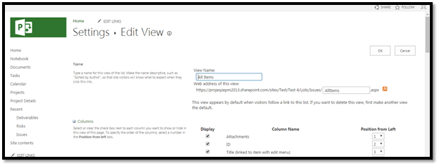 Select "Modify View" from the above figure. The page navigates to Settings >> Edit View, as shown below.