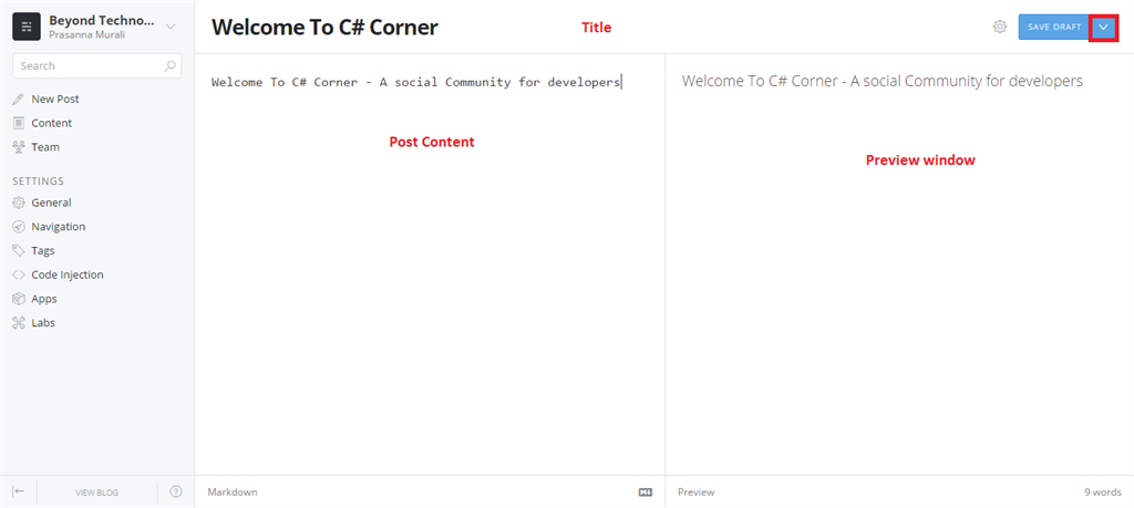 Now, on Admin page, click “New Post” to create a new post in Ghost Blogger.