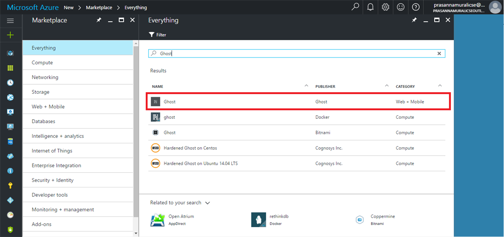 You will be navigated to the marketplace. Here, select Ghost, whose Publisher must be Ghost.