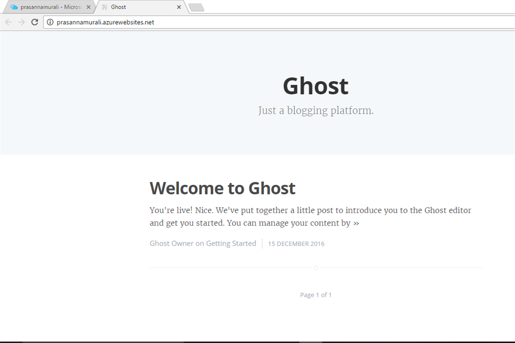 Click the URL of the web app and you will be navigated to the Ghost Blog.