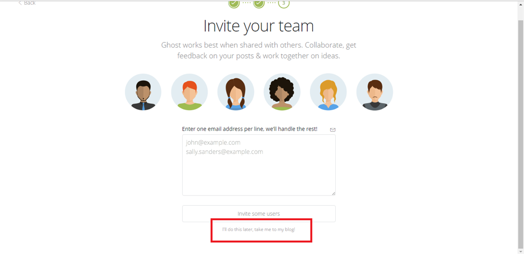 Provide your valid email ID, full name, blog name and password. Subsequently, click “Last step: Invite your team”.