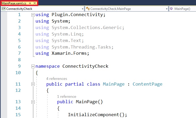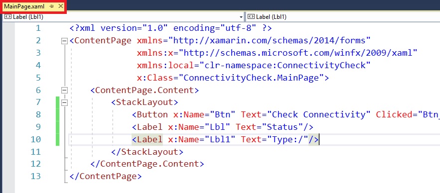 - <Button x:Name="Btn" Text="Check Connectivity" Clicked="Btn_Clicked"/>