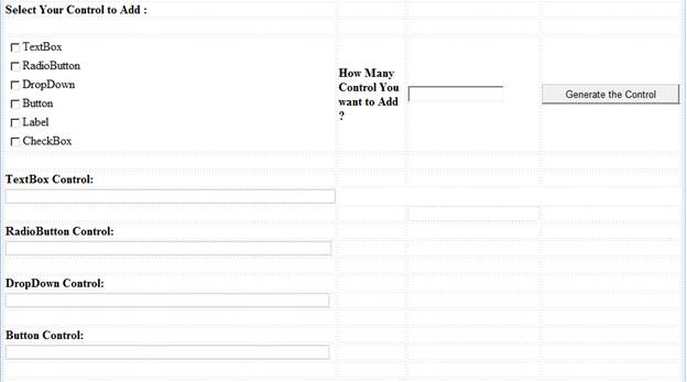 Here, after every control, we have placed a panel, so that the dynamic control is placed at this appropriate place. We hope that for the above design, we do not have to share the whole td and tr tag code because it is a lengthy table. For simplicity, we have shared our code too, you can refer that in case any trouble occurs.