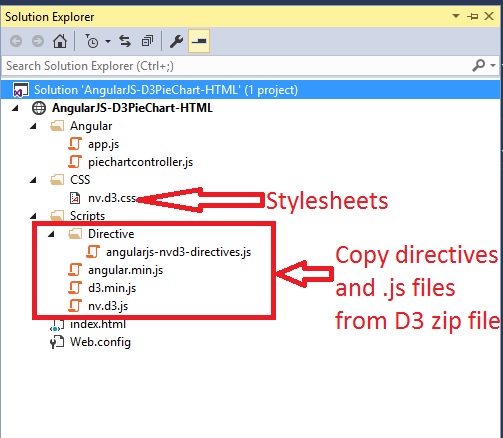 First of all, download D3 zip file from d3js.org and add few files in your application.