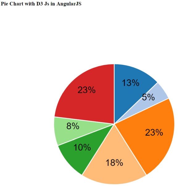 In this article we have learnt how to create Pie char using D3 js in AngularJS. If you have any question or comment, you can download attached zip file or post me a message in C# Corner comments section.