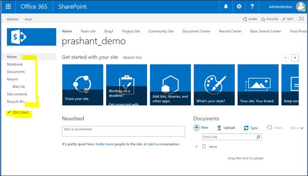 We can add, remove, or edit the links on the SharePoint page for top link or quick launch bar which will show on the left side of the screen.