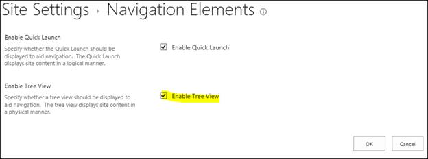 - Here, we will get two options - Enable Quick Launch & Enable Tree View.