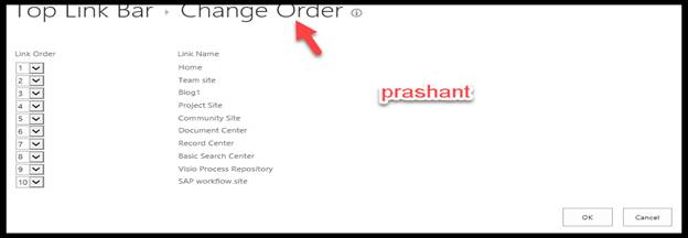 Top link bar will represent the pages, same as Quick Launch bar. We can use Top Navigation bar to navigate the site pages as per the customer or our requirement.