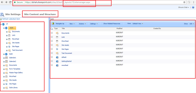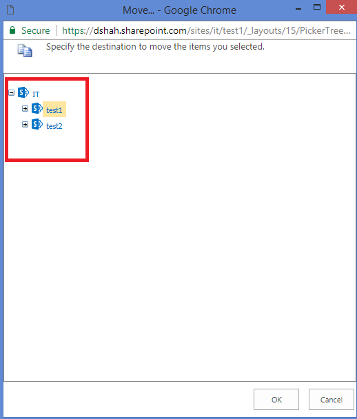 Now, I want to move https://dshah.sharepoint.com/sites/it/test1 to https://dshah.sharepoint.com/sites/it/test2