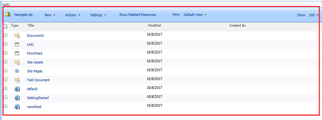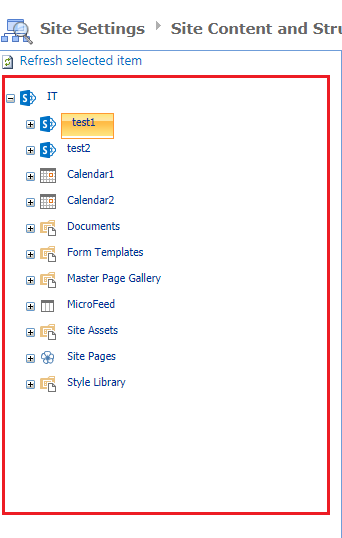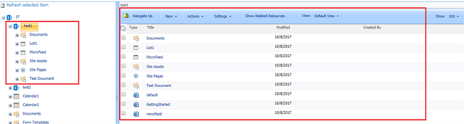 To do so, we will select the test1 site. It shows all content to the right side.