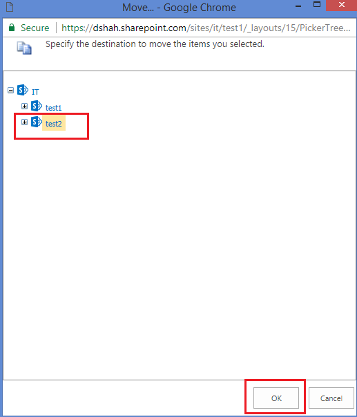 Now, let’s move test1(https://dshah.sharepoint.com/sites/it/test1) site to test2.