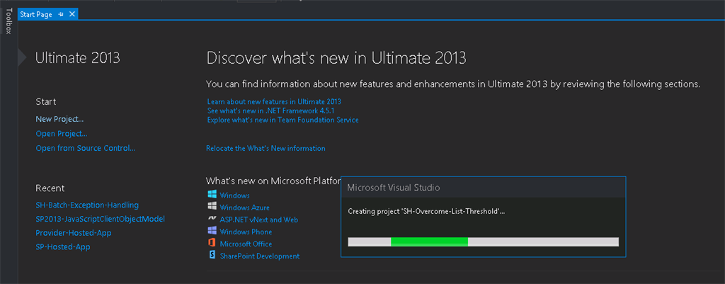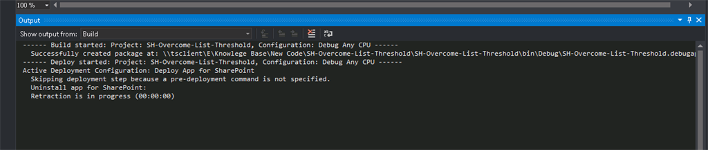 In order to showcase the data access from a Large SharePoint List, I have added a list with 1 Lakh items in it; and default Threshold limits are still intact.
