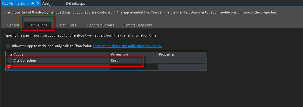 But before we move any further, we need to allow the permission for the App on Host Web because we need to query the data from the list which is hanging inside the Host Web.