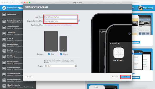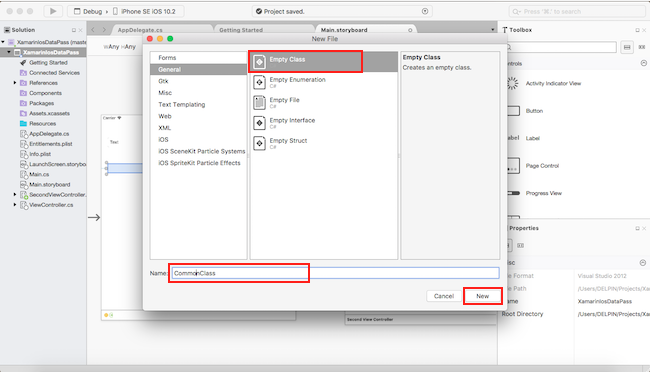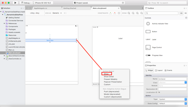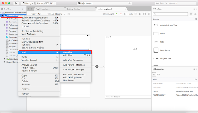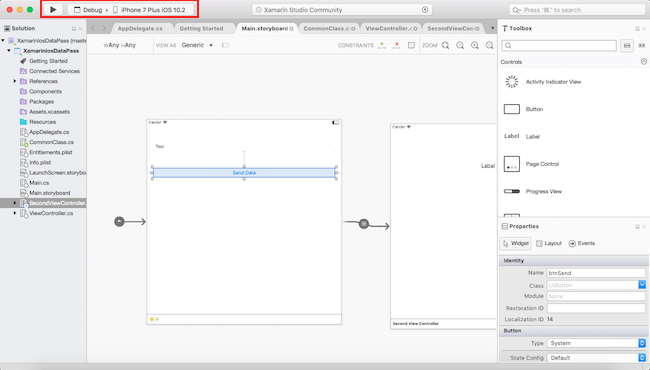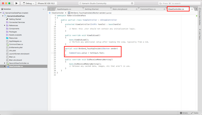 The steps given below are required to be followed in order to pass the data between two ViewControllers in Xamarin iOS, using Xamarin Studio.
