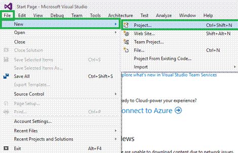Click File--> select New--> select Project. the project needs to be clicked after opening all the types of projects in Visual Studio