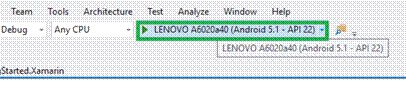 Simply, connect your phone and go to Visual Studio. The connected phone will show up in the Run menu (Ex:LENOVO A6020a40 (Android 5.1-API 22)). Click the Run option.