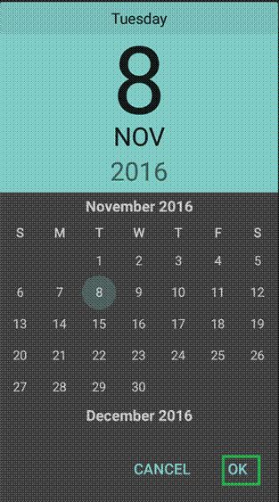 This was the process of picking a date in Android app, using Visual Studio 2015 Update 3.
