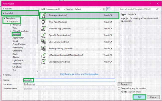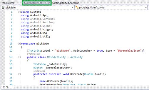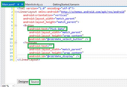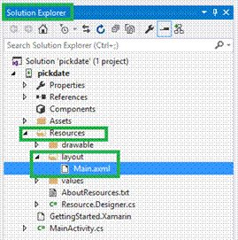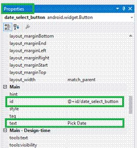 The steps given below need to be followed in order to pick a date in Android app, using Visual Studio 2015.