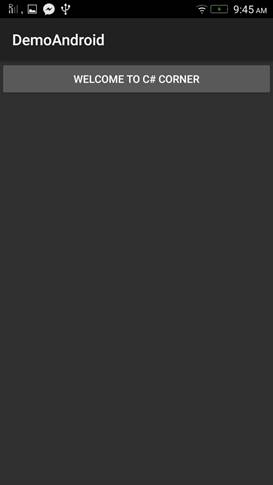 OnCreate method will run automatically when the Application starts because we set mainactivity, which is the main launcher. Set our view by using SetContentView method by passing the required view. Here, I am passing Main.axml view. Now, we need to get the button, using find view by Id and access the button properties. On button click event, I changed the button text to Welcome to C# Corner.