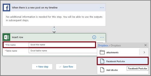 Here, we are building a flow that can save and track the Facebook wall messages in an Excel table automatically.