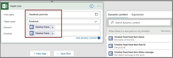 How to create a Microsoft Flow for saving the Facebook Posts to the Excel sheet