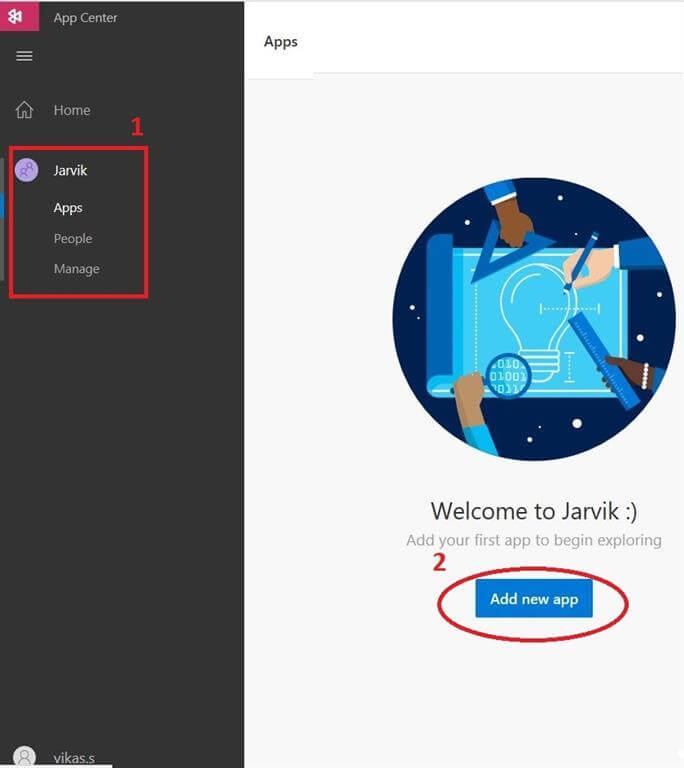 After creating organization you will see the organization name on dashboard and click on Add new app.