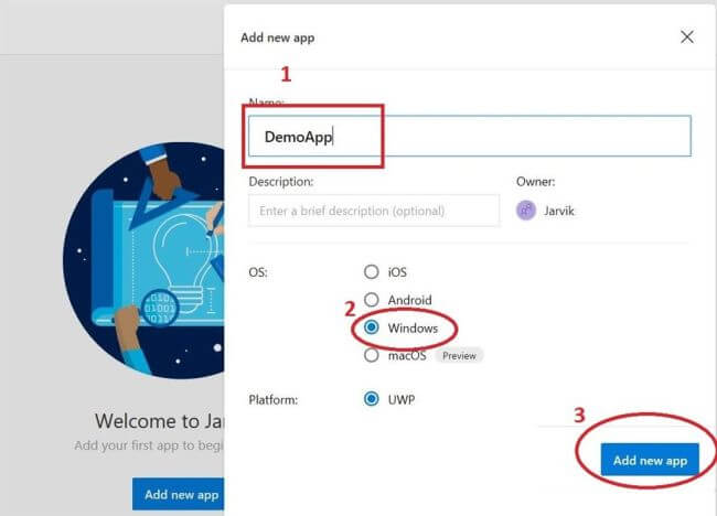 After clicking on Add new app a popup will show. Then set the name of your application and select OS and select platform. After selection click on Add new app.