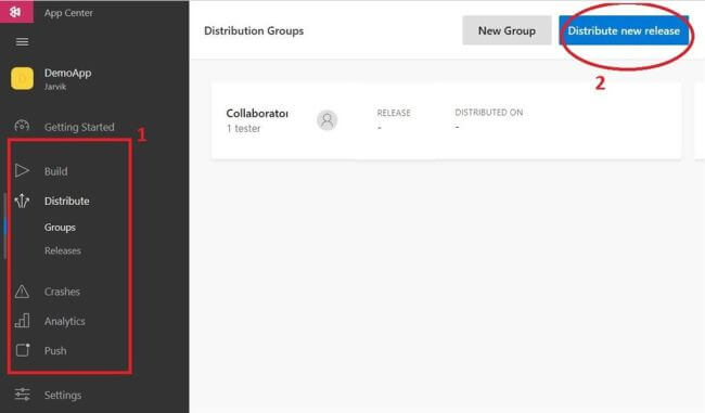 After app creation it will show the app on dashboard then click on Distribute, now click on Distribute new release.