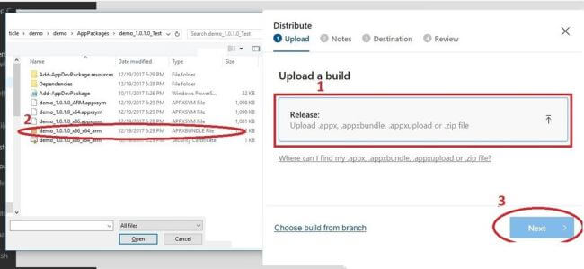 After new release click on Release and Upload a build APPXBUNDLE File and click Next.