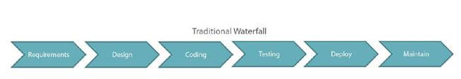 Old school of software development has taught “waterfall” approach of software development. In waterfall approach, one phase’s output becomes input to next phase and those phases are distributed across the project timeline as shown in the image below.