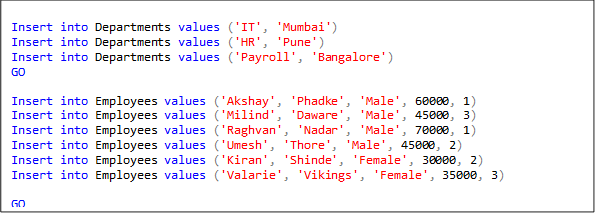 Let’s flip to SQL Server Management Studio. First, we will create a table and will insert some data.