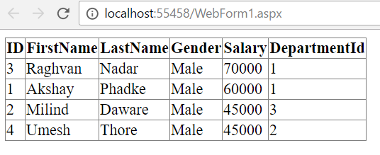 And, this is our output. We will filter some data. If we want only males and salary in descending order, our LINQ query will be as follows.