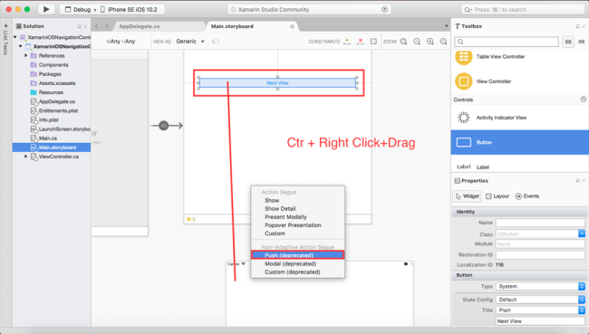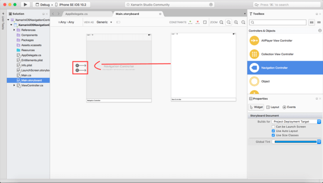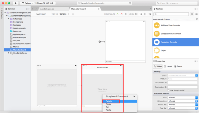 The steps given below are required to be followed in order to use navigation controller, using Xamarin Studio.