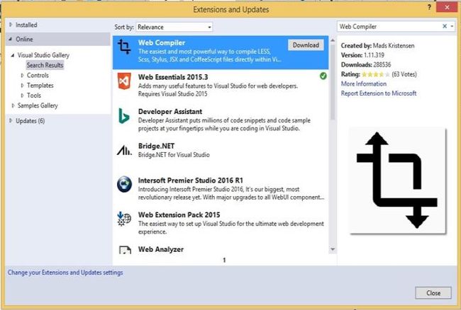 - Search for "Web Compiler" and install.