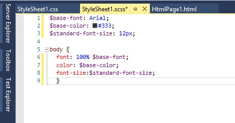 - Visual Studio 2013 provides the ability to add SASS files (.scss).