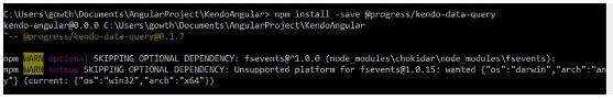 We can easily overcome this error by adding the kendo-data-query component. Add the kendo-data-query by using the following command.