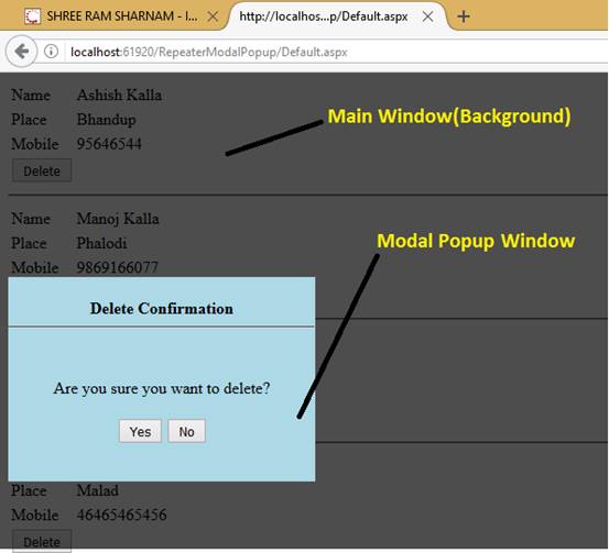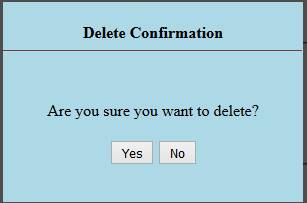 Where the popup receives confirmation from the user for whether to delete selected record or not. - Yes/No.