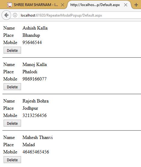 Note - For data fetching, we have used the classic ADO.NET code that is SQL DataAdapter, DataSet, and assigned to repeater.