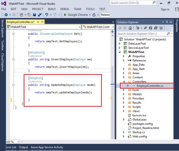 In this, I will show you how we can update the data, which will be saved in MySQL database by using the Put() method. Hence, just flip to Visual Studio and open your previous project.