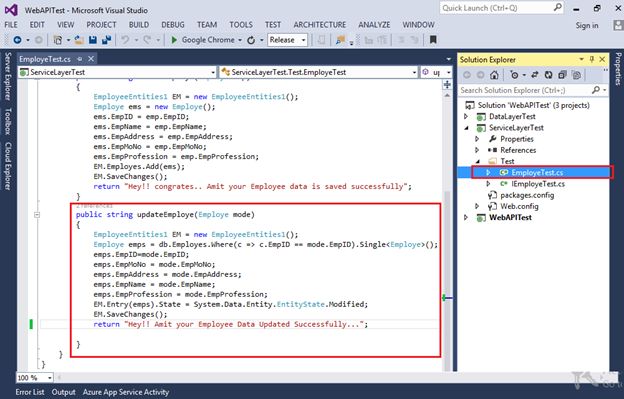 Now, we’ll work on another method of HTTP, which is Put() method, which is responsible for updating data to the Server. I’m going to work with my previous project Entity Framework, that I have created in a previous series of articles