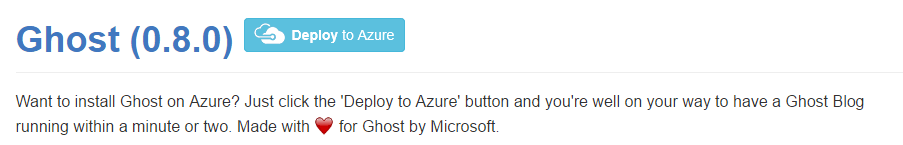 If you haven't played around with Ghost on Azure, it's incredibly easy to get started with it. Felix Rieseberg actually has a GitHub project called Ghost-Azure, which is basically a one-click and you have a way of deploying it up to the cloud.