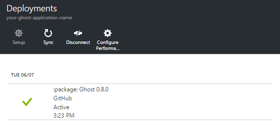 If you deployed Azure this way, then you'll find that syncing your Ghost deployment can be managed entirely through the Azure Portal via a Sync button.