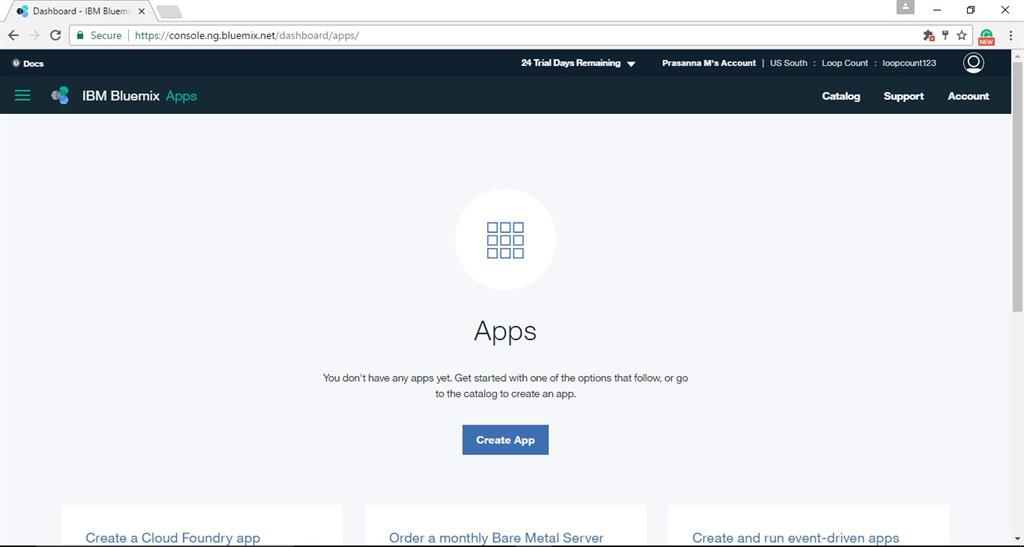 If you don’t have an IBM Bluemix account, click here to activate IBM Bluemix free trial, which is valid for 30 Days and no credit or debit card required.